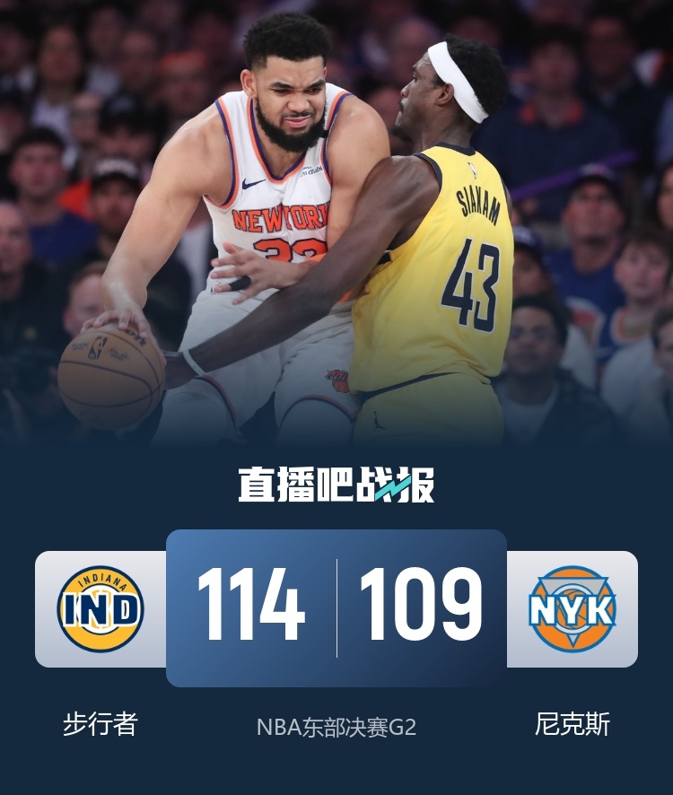 5月24日讯 NBA季后赛东部决赛G2,尼克斯今日继续主场迎战步行者。首场比赛步行者凭借着末节和加时的神奇发挥完成逆转抢占先机,此役看尼克斯如何回应。