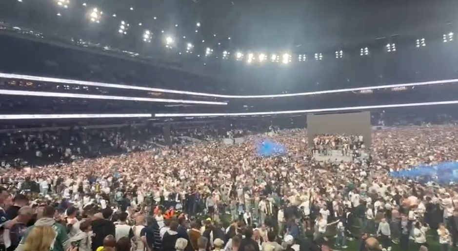 据悉,布伦南-约翰逊在第42分钟的进球为热刺锁定了胜局,让成千上万身穿白色球衣的球迷陷入了狂欢。 经过多年的失望,热刺球迷终于因这次胜利而欣喜若狂,为北伦敦带回了奖杯。在热刺球场,数千名球迷聚集在巨大的屏幕前观看比赛,当终场哨声响起时,现场顿时陷入混乱。球迷们翻过围栏,涌入北伦敦整洁的球场,形成了一片白色的海洋和旗帜的浪潮。