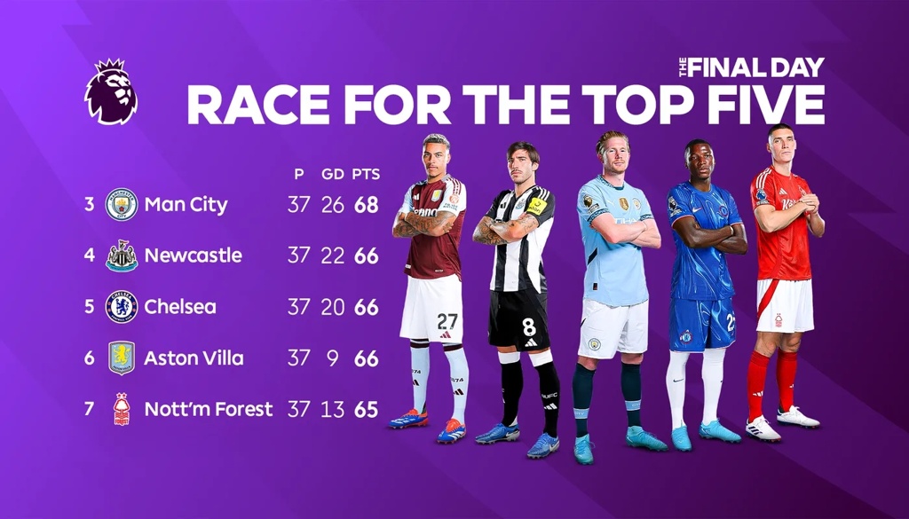 纽卡斯尔20胜6平11负积66分位列第4,仅领先排名第7的诺丁汉森林1分;埃弗顿10胜15平12负积45分位列第13。目前,纽卡斯尔积分与切尔西、维拉相同,暂时以净胜球优势领先。
