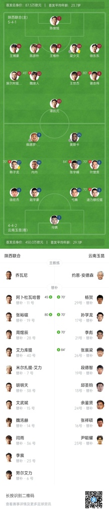 伤停补时6分钟。全场比赛结束,陕西联合1-2云南玉昆。