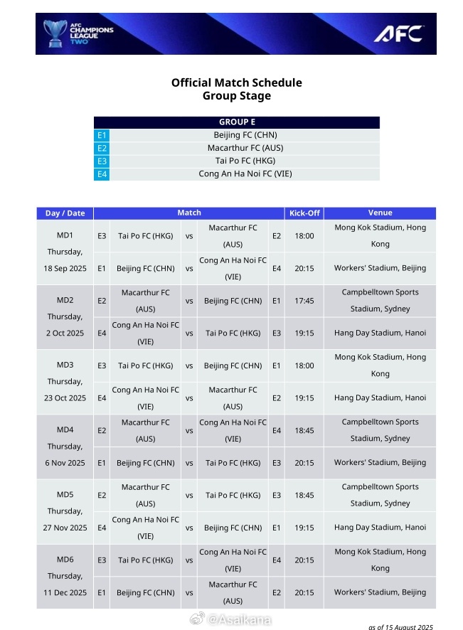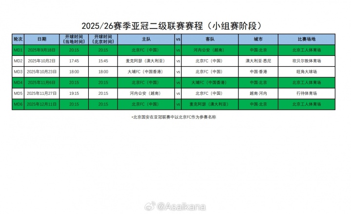 朱艺:亚足联官网今日早些时候上传的亚冠二级联赛赛程更新是不正确的,北京国安的赛程实际并未有变化(更新仅为其他小组标黄部分内容),第一场仍为主场对河内公安的比赛,估计是亚足联工作失误误传了错误版本。赛程以中国足协8月25日在官网发布的版本为准。