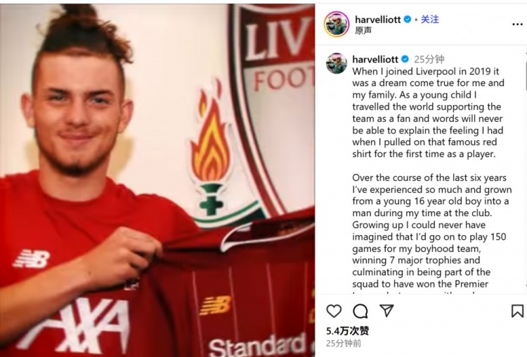 9月2日讯 埃利奥特已经官宣加盟维拉,他也通过社媒发文告别利物浦: