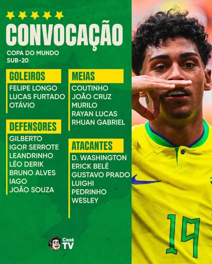 中场:库蒂尼奥(帕尔梅拉斯)、若昂-克鲁斯(巴拉纳竞技)、穆里略(克鲁塞罗)、拉扬-卢卡斯(葡萄牙体育)、鲁安-加布里埃尔(克鲁塞罗)